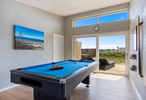 I den venlige opholdsstue med smukt trægulv venter der et hyggeligt opholdsområde med en stor brændeovn. Her kan du slappe af med en god bog eller se tv med hele familien. Hvis du vil have mere underholdning, kan I finde feriens vinder af billard eller bordtennis.