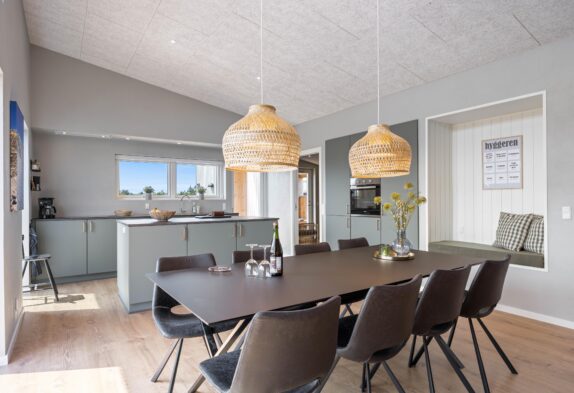 Det veludstyrede køkken lader intet tilbage at ønske og overbeviser blandt andet med en opvaskemaskine, et køleskab med 80l frysekapacitet og et moderne induktionskomfur, hvor I kan tilberede maden med hele familien.