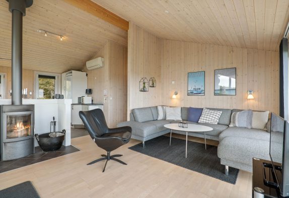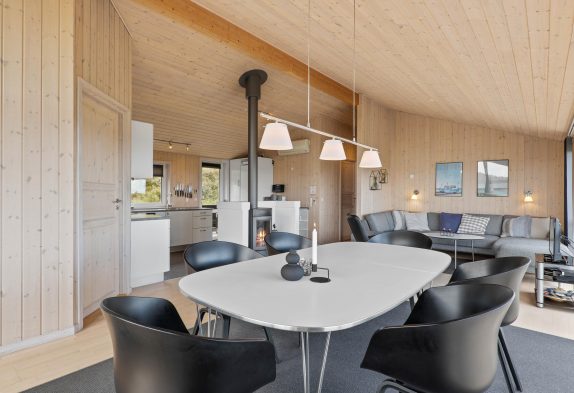 Brændeovnen skaber en særlig hyggelig atmosfære og omfavner jer med sin varme. Desuden kan I tænde for den energibesparende varmepumpe.