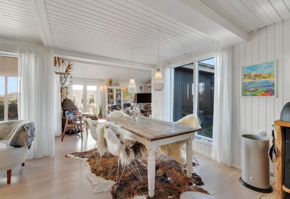 I det 90 kvadratmeter store sommerhus på Nordsøvej 292 i Søndervig bliver I mødt af en hyggelig indretning, når I træder indenfor, og der hersker ingen tvivl om, at I kommer til at føle jer godt tilpas her.