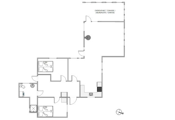 Sommerhuset byder desuden på et skønt udeområde. Her kan I nyde de solrige feriedage på sommerhusets terrasse, hvor I kan sætte jer godt til rette i havemøblerne, mens I slapper af og lytter til de brusende bølger i baggrunden. En del af terrassen er overdækket og afskærmet, og derfor er der også mulighed for, at I kan sidde i ly og læ.