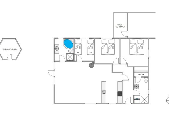 Efter en dejlig dag i solen kan I tilberede jeres aftensmad på sommerhusets gasgrill og nyde den på terrassen eller i grillhytten, der står lidt længere henne på grunden.