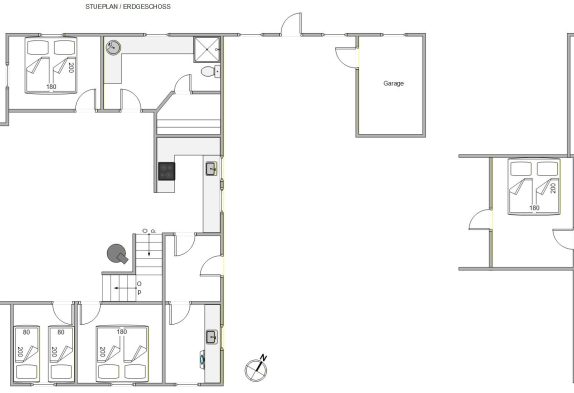 Sommerhusets 12 sovepladser er fordelt på 6 gode soveværelser, hvoraf de 3 af dem ligger på 1. salen. Værelserne er indrettet med komfortable senge, og også her er der gulvvarme. Som et ekstra plus har det ene værelse på 1. salen udgang til en skøn, overdækket altan.