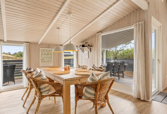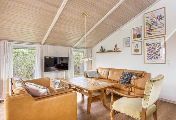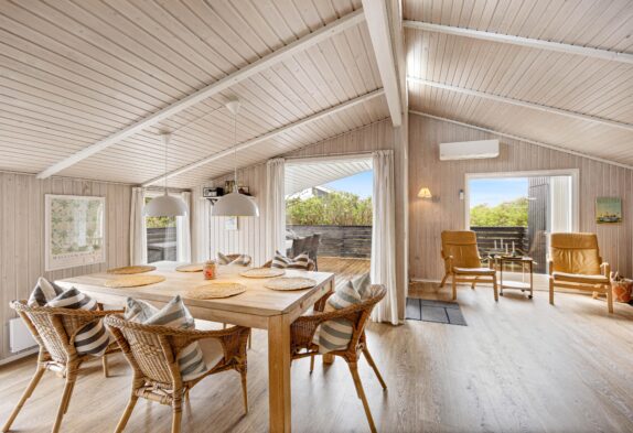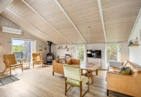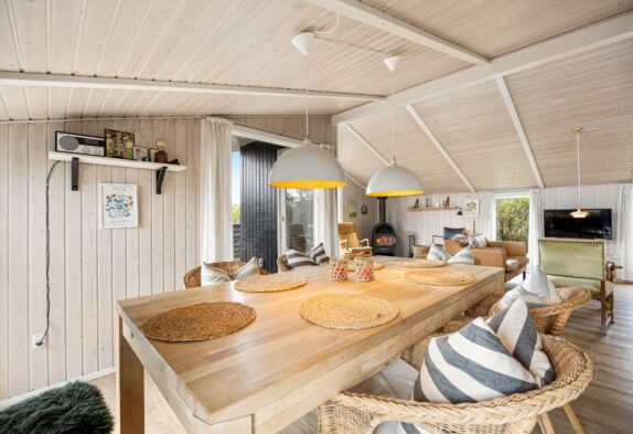I dette lyse og indbydende sommerhus vil du straks føle dig hjemme, når du træder ind. Med en knitrende ild i brændeovnen kan I sammen arrangere en tv-aften. Et fladskærms-tv med Chromecast er tilgængeligt til dette formål. Eller hvad med en spilleaften med hele familien? Intet problem med plads ved det rummelige spisebord.