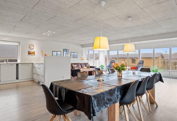 I dette 235 kvadratmeter store feriehus kan op til 8 personer have en skøn ferie i hjertet af havnebyen Hvide Sande. En hund kan komme med i sommerhuset og fornøjes over lange gåture ved strand og fjord. Slutrengøring er inkluderet i lejen, så du kan også slappe af på afrejsedagen.