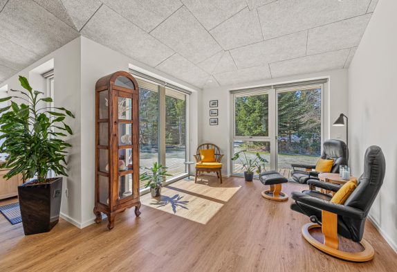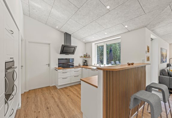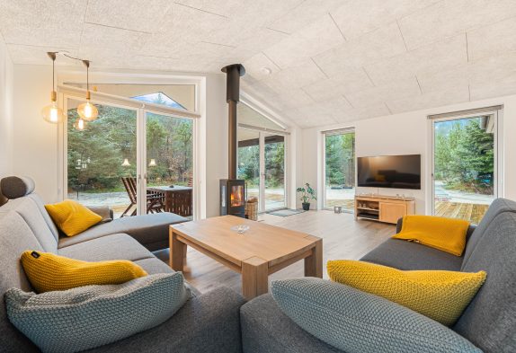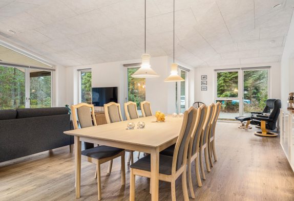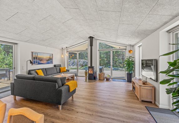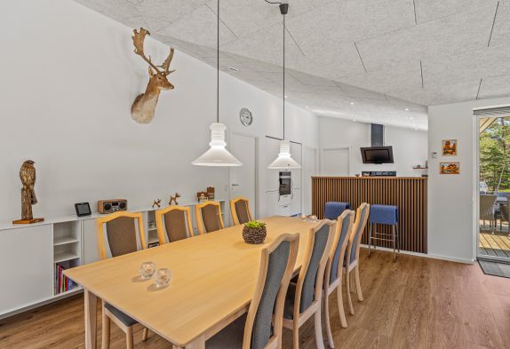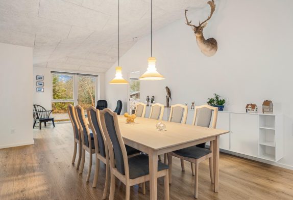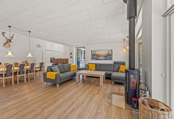 Feriehuset rummer også et skønt alrum, hvor køkken, stue og spiseplads, der i øvrigt har et fantastisk langbord, forenes. Alrummet udgør helt naturligt det helt store samlingspunkt for jer på ferien, hvor I kan tilbringe masser af tid sammen med blandt andet madlavning, spil og tv-kiggeri og film. Her er der også en brændeovn, der ikke bare sørger for god varme, den fuldender også den hyggelige feriestemning. Derudover har I en varmepumpe i feriehuset, der sørger for et godt indeklima på jeres ferie.