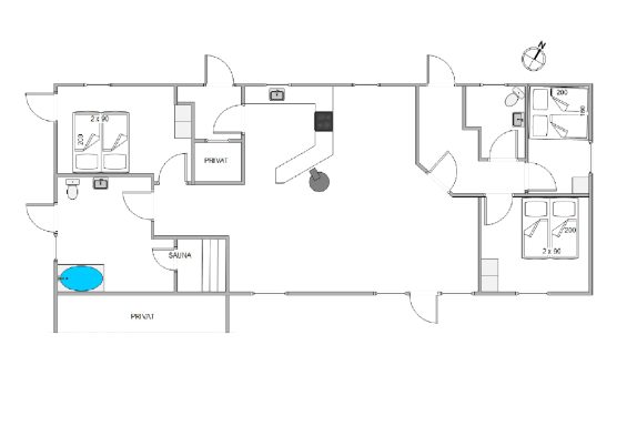 Sommerhuset byder også på gode muligheder for at komme helt ned i gear. På det ene af sommerhusets 2 badeværelser venter jer nemlig både en dejlig spa og sauna, hvor I kan blive forkælet med masser af afslapning i løbet af ferien, og på sommerhusets i alt 134 kvadratmeter er der 3 gode soveværelser med hver sin dobbeltseng, som I kan få jeres skønhedssøvn i på ferien. Sommerhusets 2 badeværelser er udstyret med gulvvarme, og jeres feriedage starter derfor helt uden kolde fødder.
