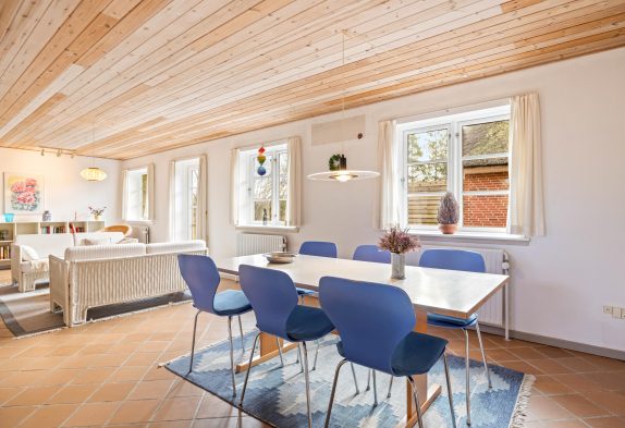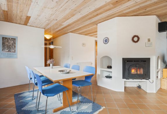 I sommerhuset venter jer en lys og personlig indretning, som I hurtigt kommer til at føle jer godt tilpas i. Her udgør alrummet sommerhusets hjerte, hvor I kan samles til gode feriestunder med blandt andet film og spil, mens brændeovnen knitrer i baggrunden og spreder varme og stemning.