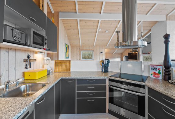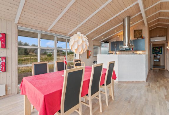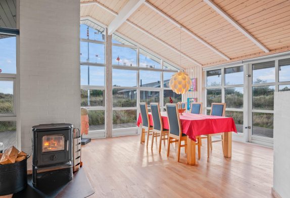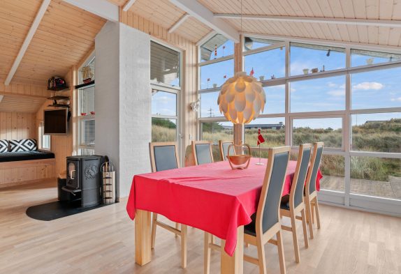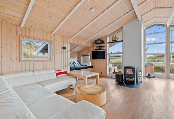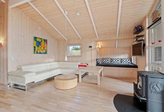 Efterfølgende kan I smide jer på sofaen, streame en god film via Chromecast eller Apple TV eller varme jer på brændeovnen. Brændeovnen er placeret centralt i feriehusets opholdsrum, så I både kan få glæde af varmen ved spisebordet såvel som i stuen.