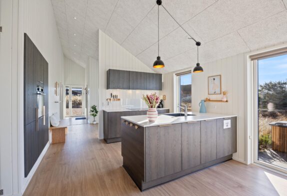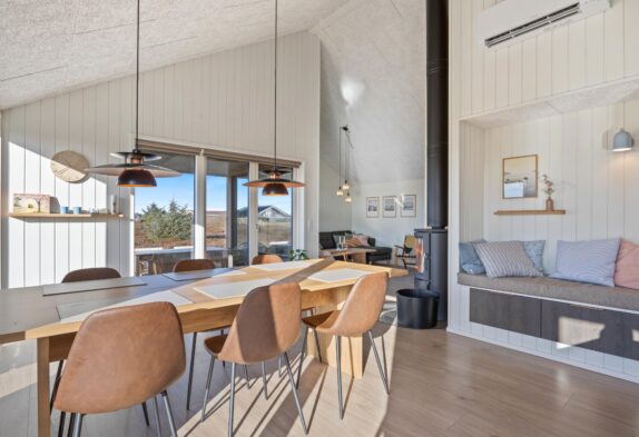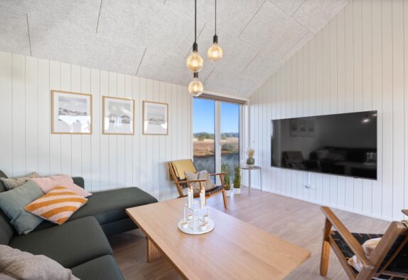 Dette moderne sommerhus er færdigbygget i 2023, og i sommerhuset kan der bo 6 personer. Feriehuset byder på en moderne og lys indretning, og på terrassen finder I både en udespa samt udebruser. Fra sommerhuset er der heller ikke langt til det brusende Vesterhav, så I nemt kan tage en frisk dukkert og skynde jer tilbage til sommerhuset, skylle saltvandet af i udebruseren og derefter hoppe ind i varmen i feriehusets sauna.