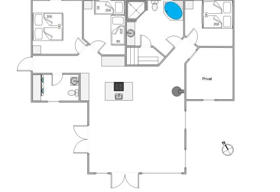 Med 2 badeværelser, begge udstyret med luksuriøs gulvvarme, begynder og slutter dagen på den bedst mulige måde. Sommerhusets faciliteter inkluderer en opvaskemaskine for nem oprydning efter måltider, samt en vaskemaskine og tørretumbler, der gør længere ophold mere bekvemme ved at holde jeres tøj friskt og rent.