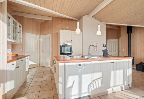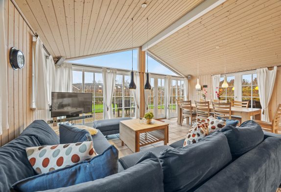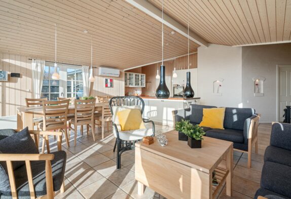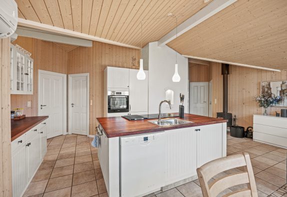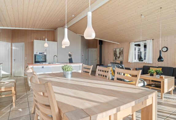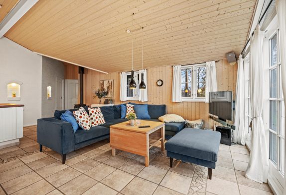 Den indbydende brændeovn skaber en varm og hyggelig atmosfære i opholdsområdet, mens saunaen og tømmespaen tilbyder ultimativ afslapning, perfekt til at slippe stressen og lade velværet få frit spil.