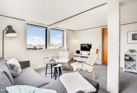 I den 59 kvadratmeter store ferielejlighed venter jer 2 gode soveværelser, hvor I kan samle ny energi til jeres kommende feriedage i Vejers Strand. Det ene soveværelse er indrettet med 1 dobbeltseng, og det andet soveværelse er indrettet med 1 enkeltseng. Derudover er der 1 badeværelse i ferielejligheden, der er med gulvvarme, så I slipper for at starte jeres feriedage med kolde fødder.