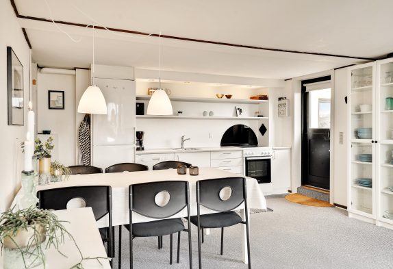 I ferielejligheden på Mågevej 8G, st – lejl. 4 i Vejers Strand er køkken, spiseplads og stue forenet i alrummet, og der er ingen tvivl om, at I kommer til at bruge mange skønne timer sammen her. I alrummet er der både mulighed for at lave mad, spille spil og se film. Efter madlavningen slipper I for at tage opvasken, da køkkenet er udstyret med en opvaskemaskine.