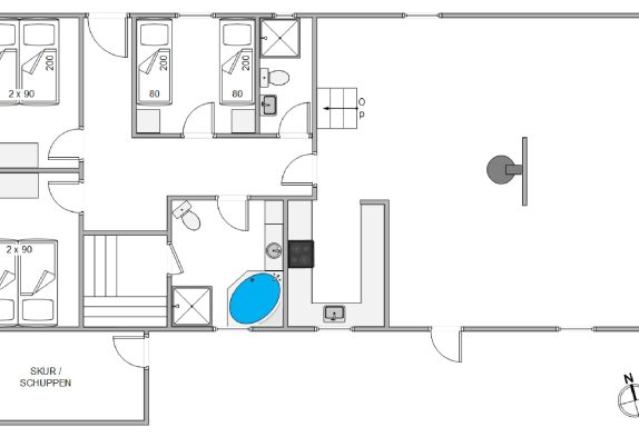 Sommerhuset indeholder et skønt badeværelse med spabad og sauna, som giver rig mulighed for at, få varmet hele kroppen igennem og koble helt af, uanset om det er en tur i det dejlige varme bad, eller om I vil i saunaen. På det andet badeværelse er der også bruser og toilet, så der er alle muligheder for at vælge, hvilket bad man foretrækker.