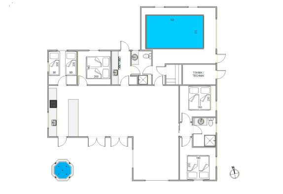 Udover udespa og sauna byder sommerhuset også på en 15 kvadratmeter stor indendørs pool, som bliver et sikkert hit hos feriens vandhunde, der helt sikkert kommer til at tilbringe mange timer med sjov og leg i poolen i løbet af ferien.