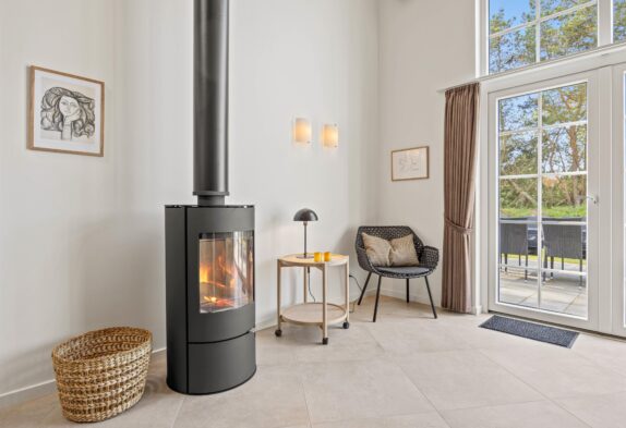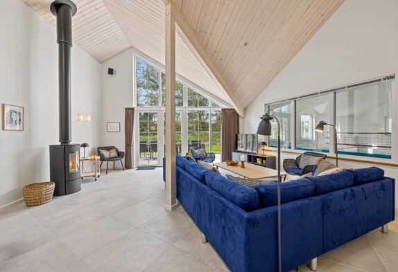 Sommerhusets veludstyrede og moderne køkken, stuen med den flotte sofa og den hyggelige spiseplads ligger i åben forbindelse i alrummet, hvor I kan tilbringe hyggelige feriestunder sammen. Her sætter brændeovnen prikken over i’et for den hyggelige feriestemning. I hele feriehuset er der gulvvarme under det flotte klinkegulv og desuden sørger en effektiv og energibesparende varmepumpe for varmen i huset, udespaen og poolen.