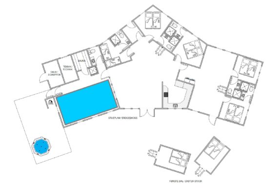 Pool, aktivitetsrum og skønt udeområde med udebruser og udespa