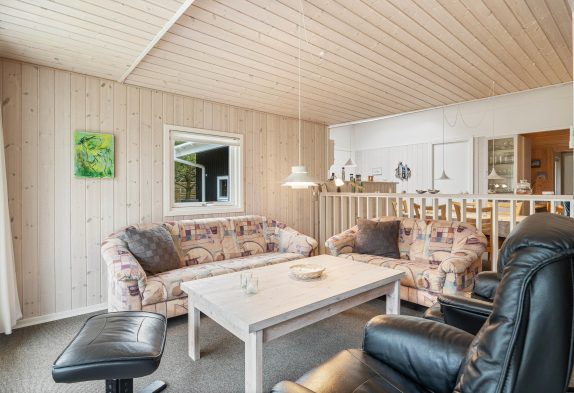 Sommerhuset på Sønder-Vasevej 11 i Blåvand byder på en hyggelig indretning, som I helt sikkert kommer til at føle jer hjemme i. Her er der trævægge og -lofter og et godt lysindfald, der er med til at skabe den helt rette ferieatmosfære.