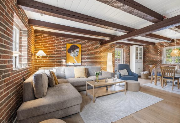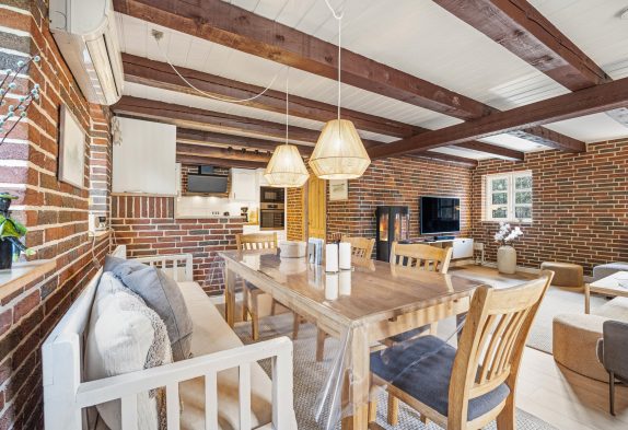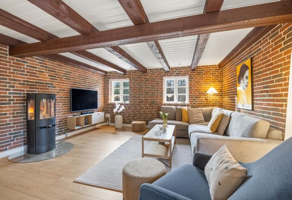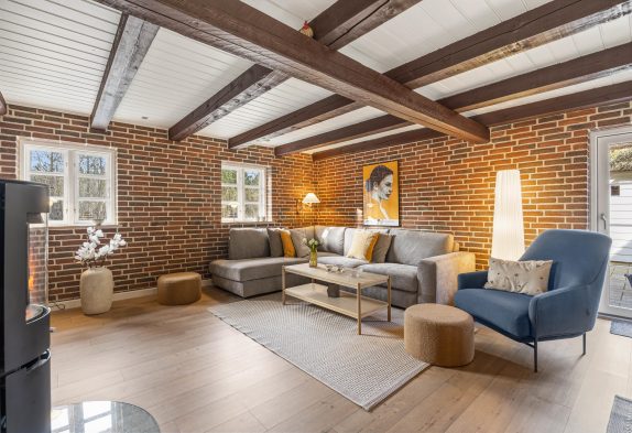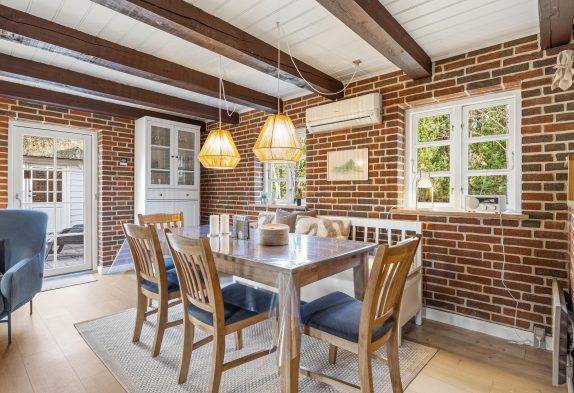 Det ene af soveværelserne finder I også i stueetagen, mens de resterende 3 soveværelser er at finde på sommerhusets førstesal. På førstesalen er der desuden også et gæstetoilet, så I slipper for at skulle stå i kø om morgenen.