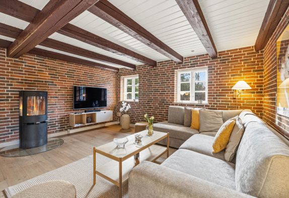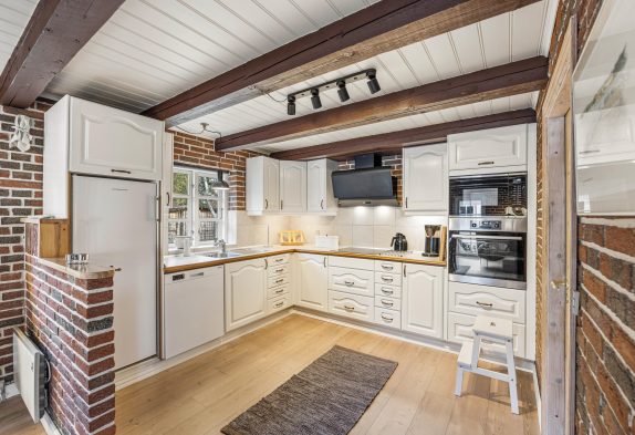 Sommerhuset er indrettet i 2 plan. I stueetagen finder I det hyggelige alrum, hvor I kan tilbringe mange hyggelige feriestunder med film, spil og madlavning, mens brændeovnen fuldender den hyggelige feriestemning med sin knitren i baggrunden. Her er der desuden også lagt gulvvarme, der holder jeres fødder dejlig varme.