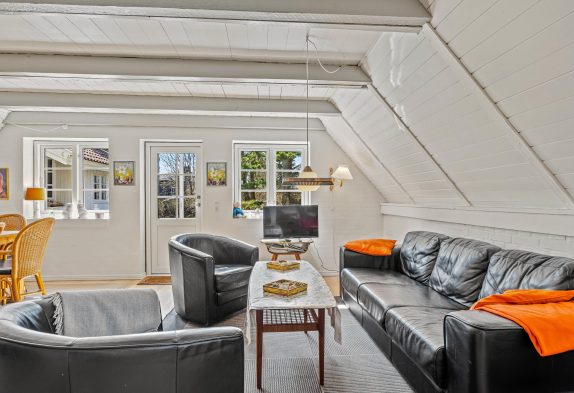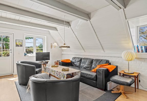 I stuen kan I samles til et af de mange spil ved sofabordet som sommerhuset byder på, mens brændeovnen spreder hygge og varme. På badeværelset skal I heller ikke fryse om fødderne, for her er der nemlig gulvvarme. I huset findes også en energivenlig luft til luft varmepumpe, der sørger for effektiv opvarmning og godt indeklima.