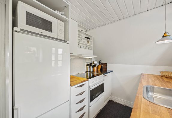 Takket være feriehusets gode praktiske faciliteter i køkkenet med blandt andet en opvaskemaskine, separat fryser til 75 liters opbevaring samt en mikroovn, kan maden hurtigt tilberedes uden for mange husarbejdstimer på ferien.