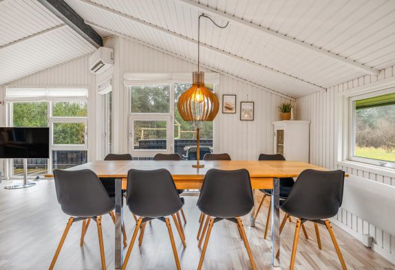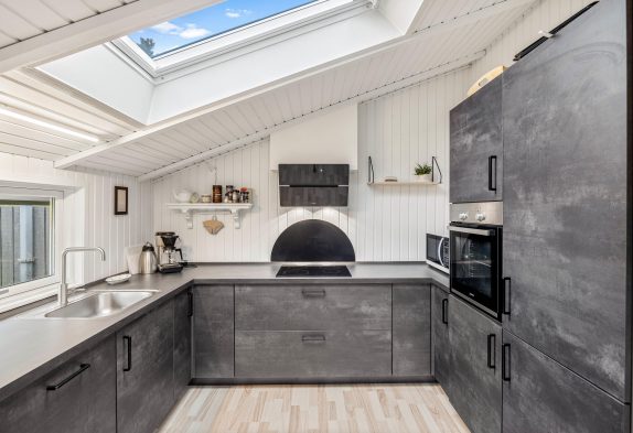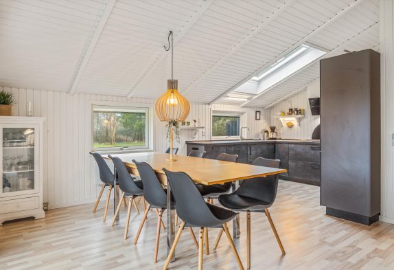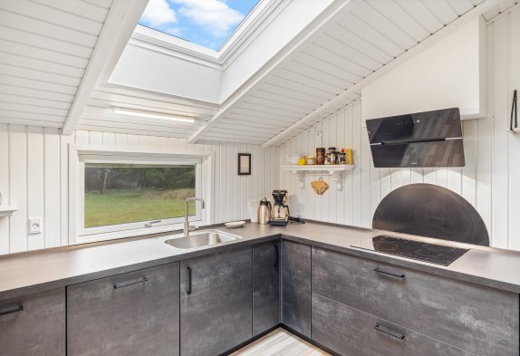 Sommerhusets hjerte, som også bliver jeres store samlingspunkt på ferien, er alrummet. Her er køkken, stue og spiseplads samlet, og I har derfor rig mulighed for at tilbringe mange dejlige feriestunder her, hvor I blandt andet kan lave mad i det nye køkken fra 2021.