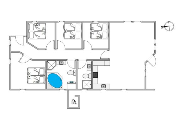 Når I trænger til at samle ny energi til jeres kommende feriedag i Blåvand, kan I søge mod sommerhusets 4 soveværelser, der hver er indrettet med en dobbeltseng, som I kan få jeres skønhedssøvn i. Om morgenen slipper I både for at fryse fødderne og for at stå i kø, da der er 2 badeværelser med gulvvarme i sommerhuset.