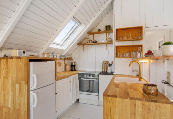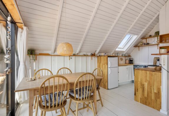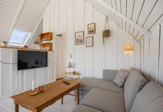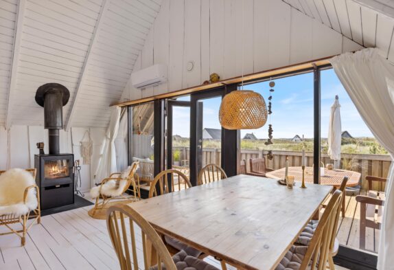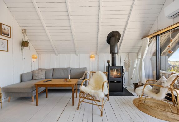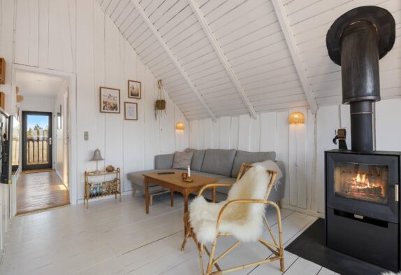 Dette charmerende feriehus emmer af varme og hygge. Takket være de skrå lofter, trægulvene og indretningen valgt med stor sans for detaljer, vil I her hurtigt føle jer hjemme. Smid dig i den komfortable sofa og læs din yndlingsbog, mens ilden i brændeovnen knitrer og giver det sidste til den helt rette feriestemning.