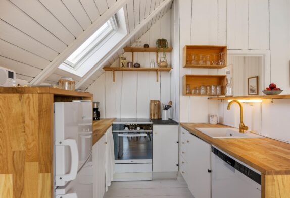 I det praktisk udstyrede køkken finder du alt, hvad du behøver for at tilberede lækre måltider. Og så tager opvaskemaskinen sig af opvasken.