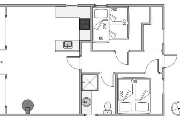 Sommerhuset har et fint badeværelse, og i de 2 soveværelser finder I i alt 2 komfortable dobbeltsenge og en køjeseng.