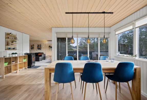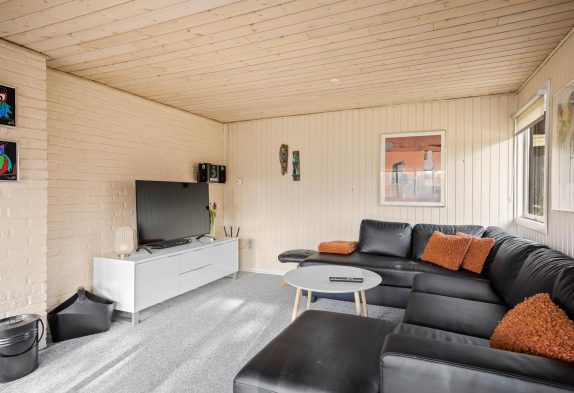 Dette fine sommerhus på Bjerregårdsvej 120 er nænsomt indrettet af ejerne, så I straks føler jer hjemme. Den komfortable sofa indbyder til afslapning, f.eks. med en hyggelig tv-aften eller en god bog og et glas vin. Nyd den hyggelige stemning og varmen fra træpilleovnen. Den energibesparende varmepumpe hjælper til med opvarmningen.