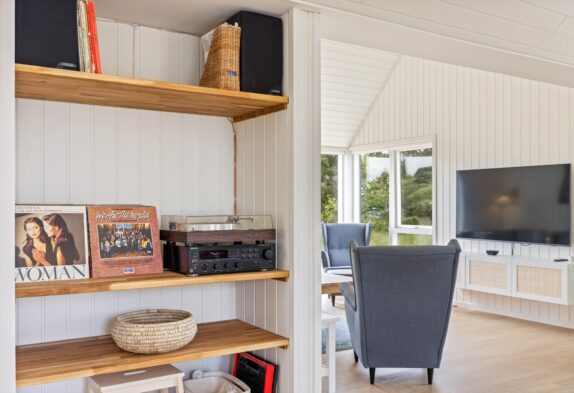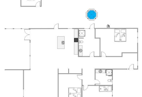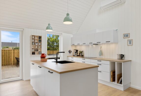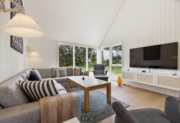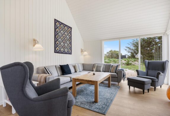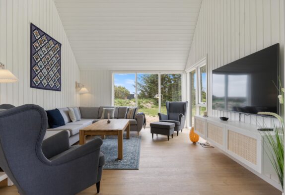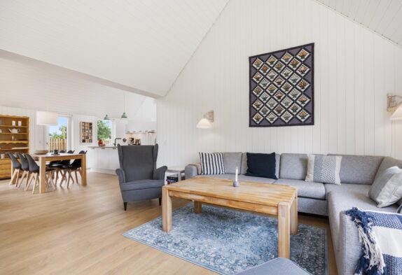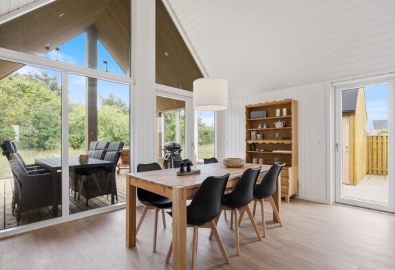 Det fantastiske sommerhus kan danne rammerne for den skønneste ferie for 6 feriegæster, og I vil hurtigt føle jer hjemme. Feriehuset på 120 m2 er funktionelt indrettet med store værelser og højt til loftet. Planløsningen byder på tre gode soverum, hvoraf to er indrettet med dobbeltseng og det sidste med to enkeltsenge, to badeværelser samt et fantastisk køkkenalrum. Køkkenalrummet og stuen ligger i åben forbindelse og kan betegnes som feriehusets hjerte; her er nemlig plads til hygge sammen og hver for sig. Her kan I slappe af på sofaen med jeres yndlingsserie, som streames via sommerhusets Chromecast, mens der gøres klar til et lækkert måltid i køkkenet. Fra køkkenalrummet er der udgang til en skøn og delvist overdækket træterrasse, hvor I kan nyde måltidet efterfulgt af god vin langt ud på aftenen i de lune aftentimer.