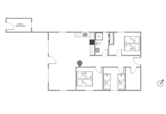 Feriestemningen begynder allerede idet, I træder ind ad entréen. Her møder I den aflange gang, hvor der er 3 rummelige og lyse soveværelser. Her kan I sove godt og trygt. Det lyse og smarte badeværelse er udstyret med gulvvarme, så I altid kan holde jeres fødder varme. Derudover er der også både vaskemaskine og tørretumbler til rådighed, hvilket er særlig praktisk for børnefamilier.