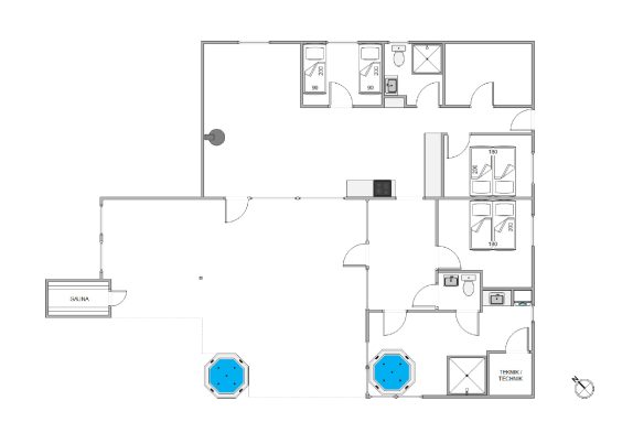 Leder I efter et skønt sommerhus, som ligger i læg for naboer og tæer, så er Ved Heksebjerg 11 i Blåvand noget for jer. Sommerhuset, som er blevet renoveret i 2021, lover afslapning og velvære for hele familien med et stort udendørs wellnessområde samt indendørs spa.