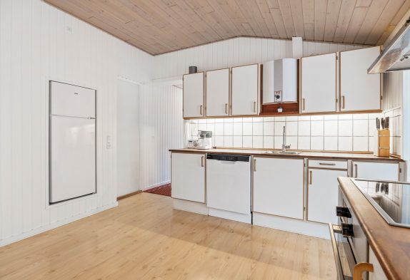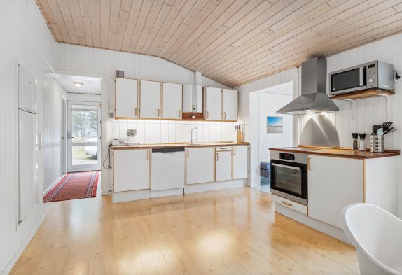 Det funktionelle køkken er veludstyret og har alt, hvad der skulle være brug for, bl.a. opvaskemaskine. Ligeledes er husets planløsning funktionelt indrettet med tre soveværelser, badeværelse og et ekstra gæstetoilet. Ekstra dejligt er det i husets spaområde med boblebad. Her kan få ladet batterierne op eller ordne de praktiske gøremål såsom tøjvask med hjælp fra vaskemaskinen og tørretumbleren.