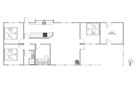I dette sommerhus kan I folde jer ud på 3 gode soveværelser, hvoraf to har en dobbeltseng og det sidste en 3/4 seng. Og derudover finder I også et badeværelse.