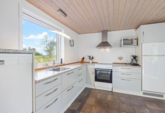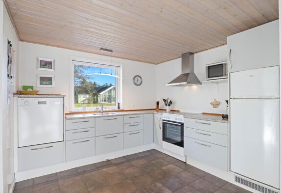 På skovsangervej 14, byder dette feriehus på et skønt og lyst køkken, der er perfekt til at tilberede lækker mad og nyde hyggelige samtaler med venner og familie. Køkkenet er veludstyret med moderne faciliteter og gode muligheder for at tilberede alt fra simple snacks til mere avancerede retter. Den åbne indretning gør det nemt at være i køkkenet samtidig med, at man kan deltage i samtaler i stuen eller spisestuen. Køkkenet er også udstyret med en opvaskemaskine, der gør det nemt at rydde op efter måltiderne, så I kan bruge mere tid på at slappe af og nyde ferien sammen.