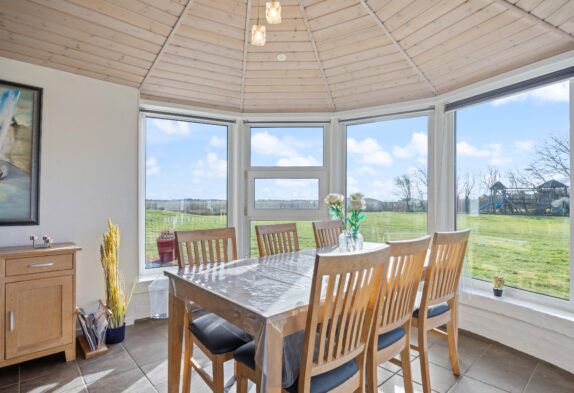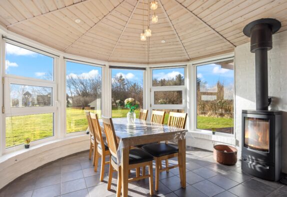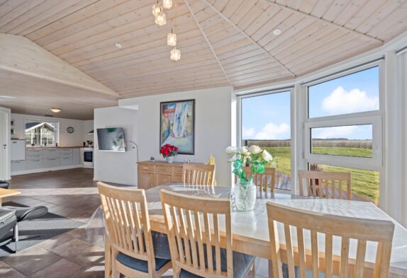 Husets hjerte, stuen – er en skøn oase at slappe af og nyde den smukke udsigt over det åbne landskab, markerne og den store græsplæne. Stuen er indrettet med en komfortabel sofa og behagelige stole, der indbyder til afslapning, hygge og dybe samtaler. Der er en fantastisk karnap, hvor lyset strømmer ind og skaber en behagelig og varm atmosfære på kølige aftener. Stuen er også et perfekt sted til at tilbringe tid sammen med familie og venner. I kan spille spil eller se film sammen i de hyggelige omgivelser, mens I nyder udsigten og roen.