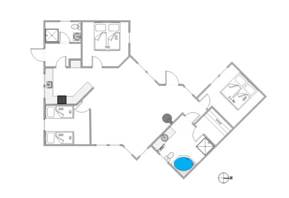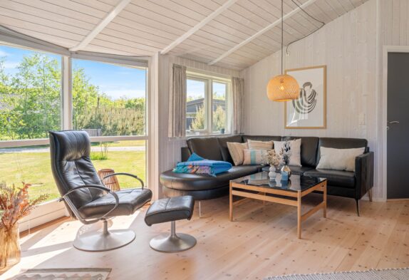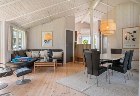 Indearealet i sommerhuset i Bork Havn har alt, hvad I skal bruge for at få et dejligt ophold. Der er plads til 6 personer, fordelt på 3 hyggelige soverum, så både familie og venner kan sove godt. I finder 2 badeværelser, der begge har dejlig gulvvarme, som gør de tidligere morgener lidt nemmere.