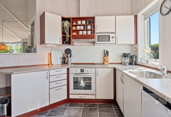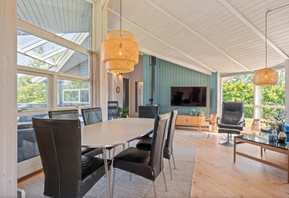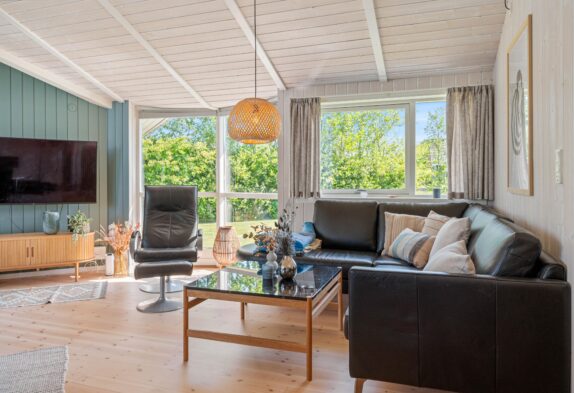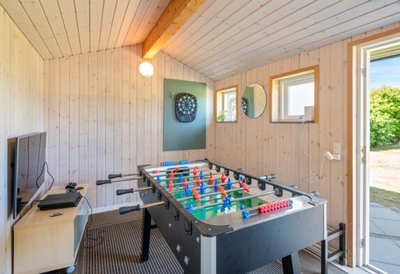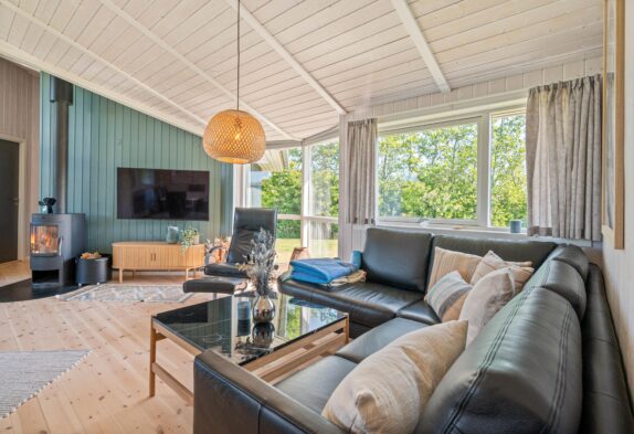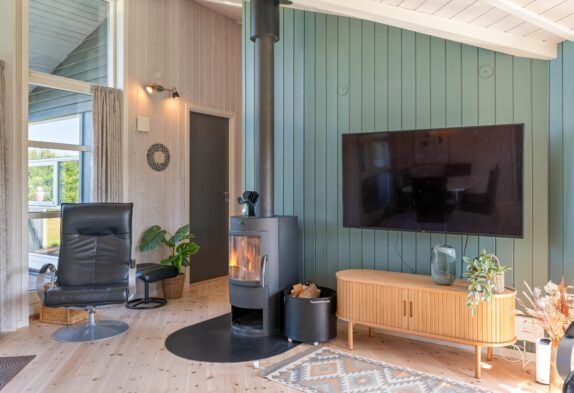 Efter en dag fyldt med sjove aktiviteter, kan I slappe af i saunaen eller tage en tur i tømmespabadet og få fornyet energi. Med både opvaskemaskine og vaskemaskine er det nemt at få klaret de daglige gøremål, og i stuen kan I nyde den varme, hyggelige stemning fra brændeovnen, når aftenen falder på.