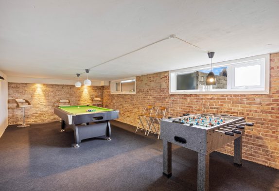 Derudover er sovepladserne fordelt på 4 soverum, hvoraf et af rummene er med køjer, som vil være ideelt for de mindste gæster. Indretningen i sommerhuset giver mulighed for at skabe ro for de mindste ved puttetid samtidig med, at de voksne kan more sig med en pool- eller bordfodboldturnering nedenunder i det skønne aktivitetsrum.
