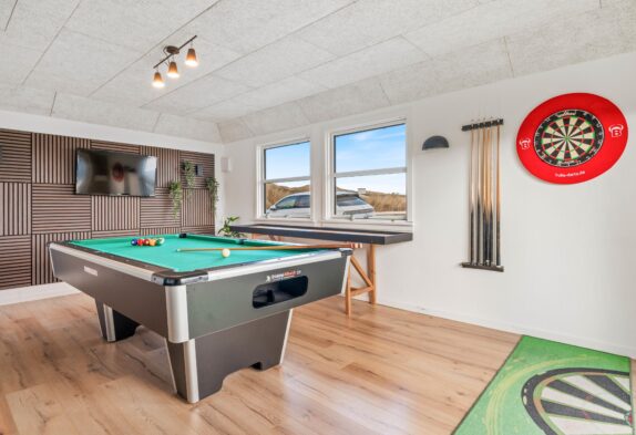 Smut en tur i aktivitetsrummet og spil noget bordtennis, eller hyg jer ved billardbordet, hvor I også finder husets anden brændeovn, som er en rigtig hyggelig opvarmningskilde på de køligere dage.