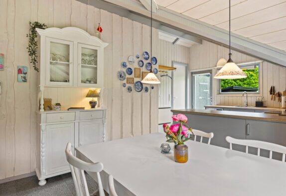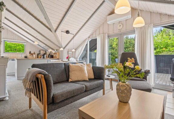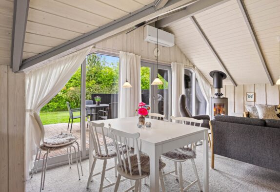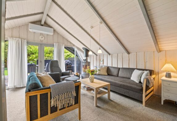 Sommerhuset opvarmes med en energibesparende varmepumpe, som sørger for god temperatur og godt indeklima. Hvis det skal være ekstra hyggeligt, kan I også tænde op i brændeovnen og nyde de knitrende flammer, der spreder en skøn varme. Perfekt til de kølige aftener.