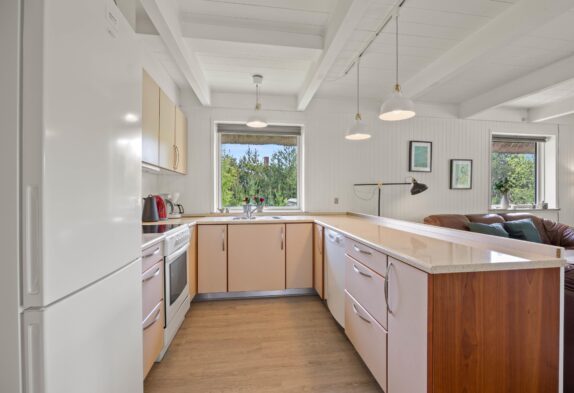 Det hyggelige sommerhus er udstyret med alle praktiske fornødenheder – opvaskemaskine, vaskemaskine og tørretumbler, en hurtig og stabil internetforbindelse samt en energibesparende varmepumpe, som hjæper til med opvarmningen.