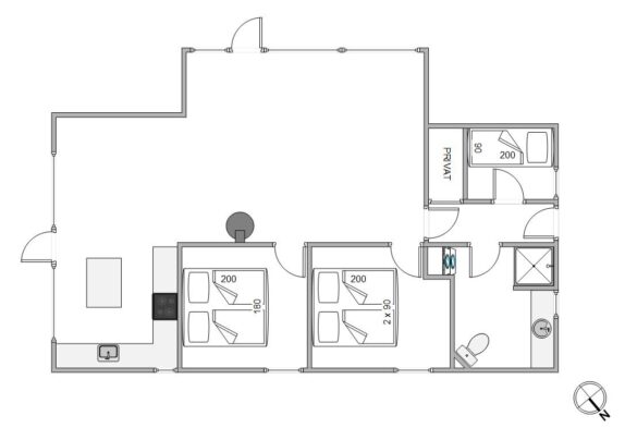 Ved det rummelige spisebord kan I slutte aftenen af med at spille brætspil sammen, inden sengen kalder. Til den gode nats søvn er der 3 hyggelige soveværelser til jeres rådighed. Der er 2 soveværelser med dobbeltseng, mens der på det sidste værelse er en enkeltseng.