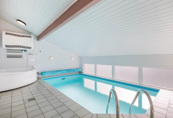 Et af sommerhusets absolutte highlights er poolrummet, som byder på aktiviteter for hele familien, hvad enten I er til sjov og leg eller afslapning og velvære. Her finder I en 13 m2 pool med svømmetræner, en tømmespa samt en dejlig sauna. I poolrummet kan I derfor hurtigt få et par timer til at gå med udvalget af aktiviteter.