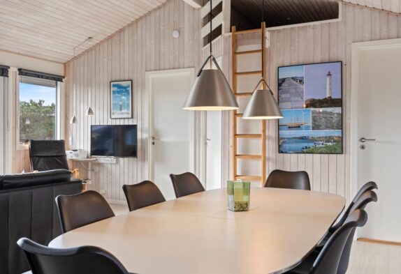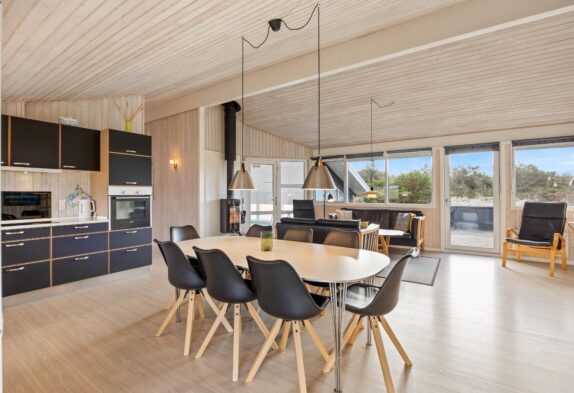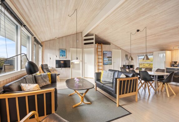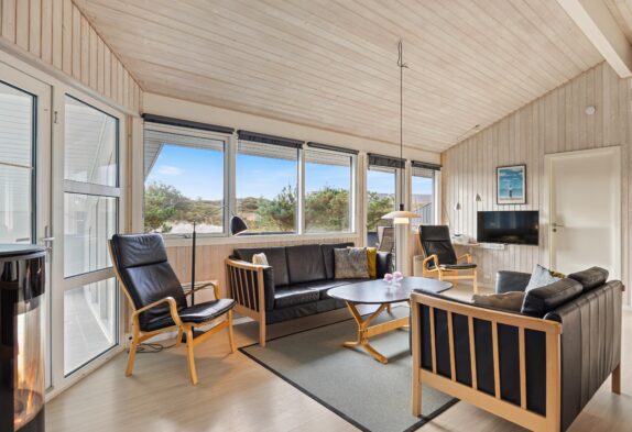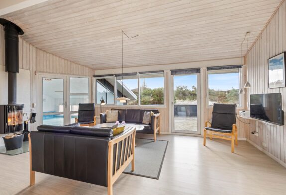 Efter en tur i poolen kan I samles i sommerhusets hyggelige opholdsrum, der ligger i åben forbindelse til det veludstyrede køkken. Her kan I nyde hinandens selskab og spille et sjovt brætspil, mens brændeovnen knitrer i baggrunden og sætter prikken over i’et til feriestemningen. Sommerhuset har desuden en energibesparende varmepumpe, som I med fordel kan benytte jer af.