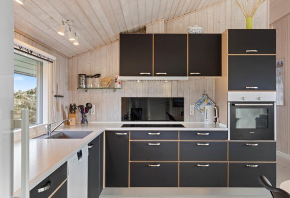 Fra opholdsrummet har I udgang til en afskærmet og lukket terrasse, som indbyder til mange hyggelige stunder på lune sommerdage. Her kan I tænde op i grillen og tilberede et lækkert aftensmåltid, mens solen går ned bag klitterne. Sommerhuset ligger på en dejlig naturgrund med gyngestativ, hvor børnene kan lege, mens kødet grilles færdigt.